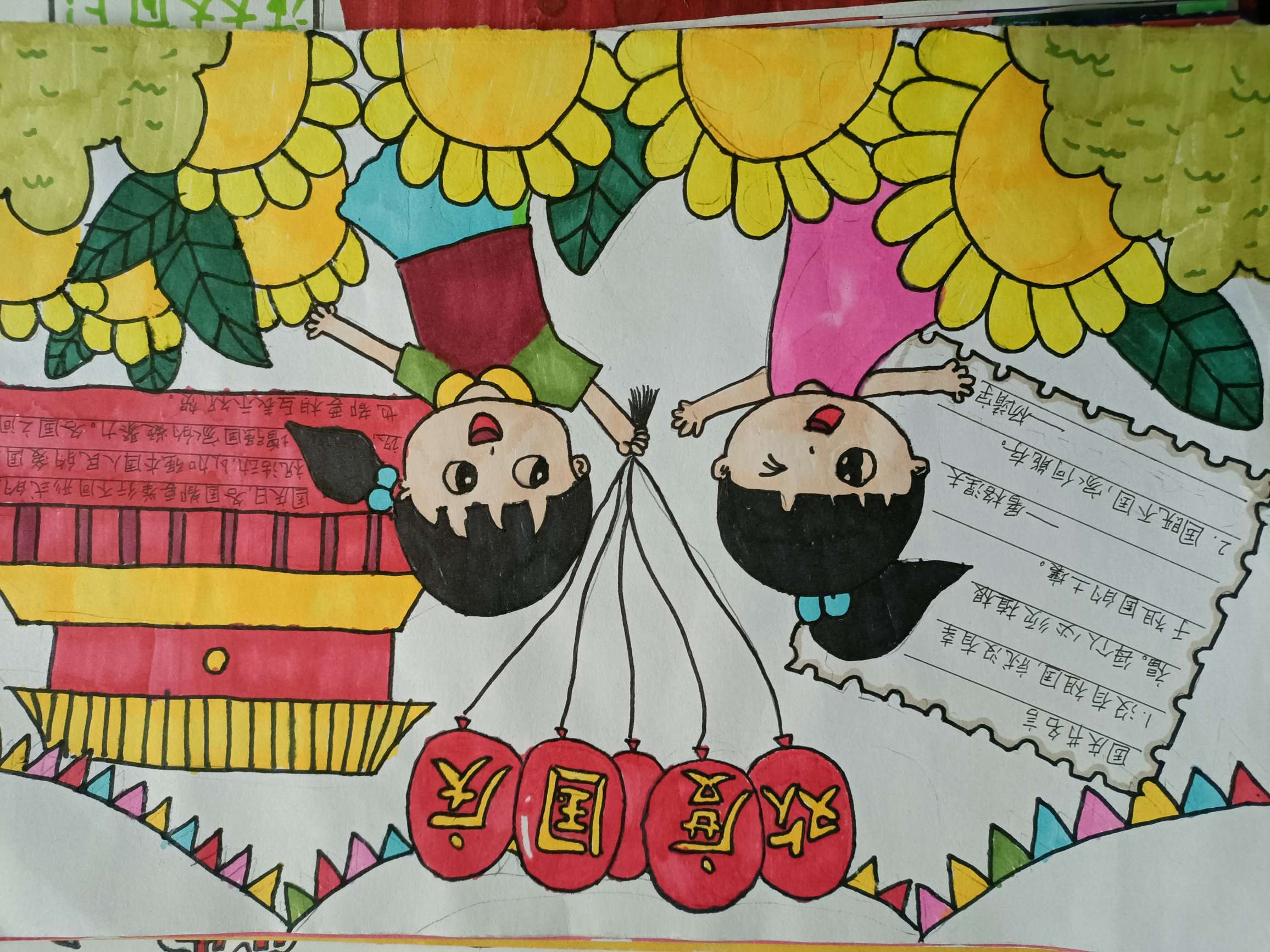 孩子们为庆祝祖国72周岁生日,用双手画出了与国同庆的心声,共同赞美祖国,祝福祖国繁荣昌盛,国泰民安!