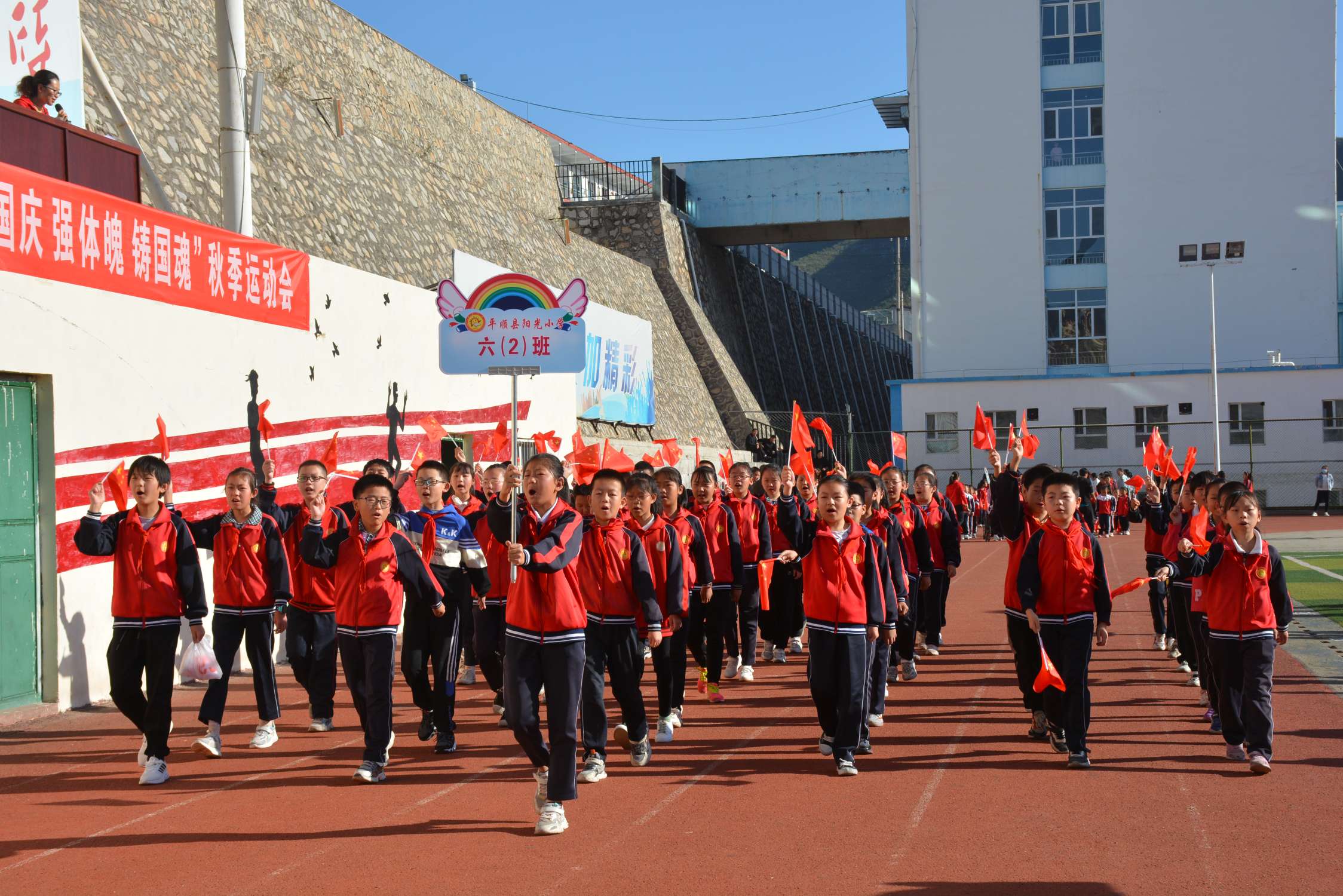 2021年9月30日上午八点,阳光小学举行了2021年“庆国庆 强体魄 铸国魂”秋季运动会。
