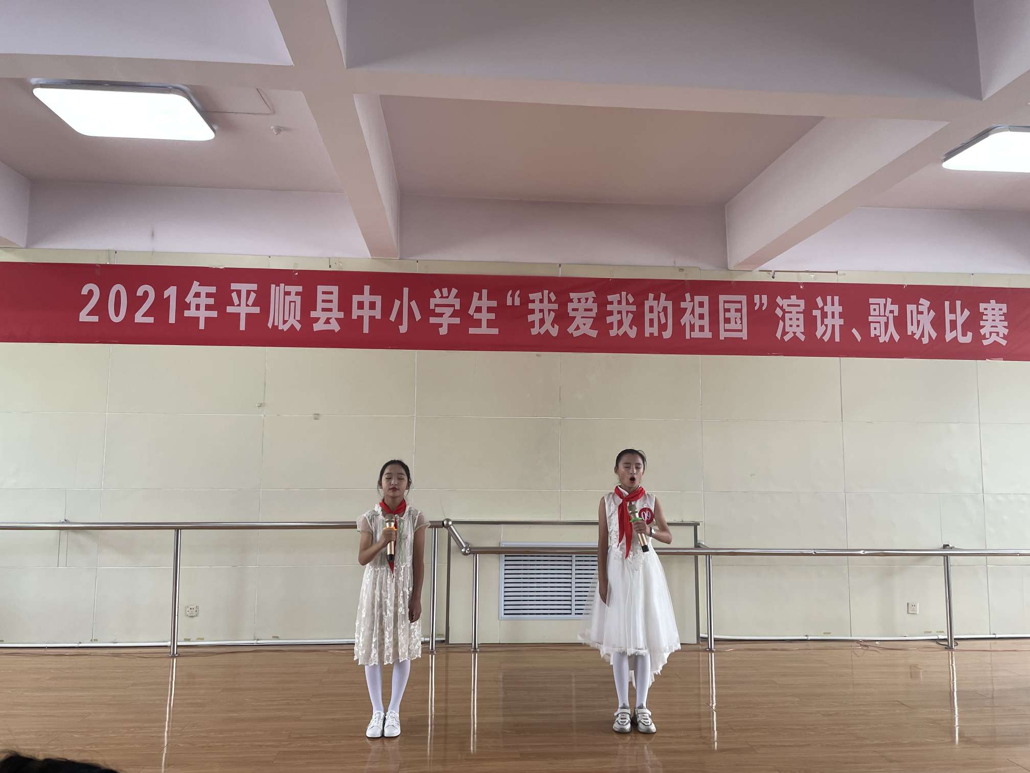 岳泽希和王梓涵代表学校参加了县局里举办的《我爱我的祖国》朗诵比赛。